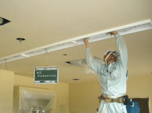 屋内照明取付工事状況